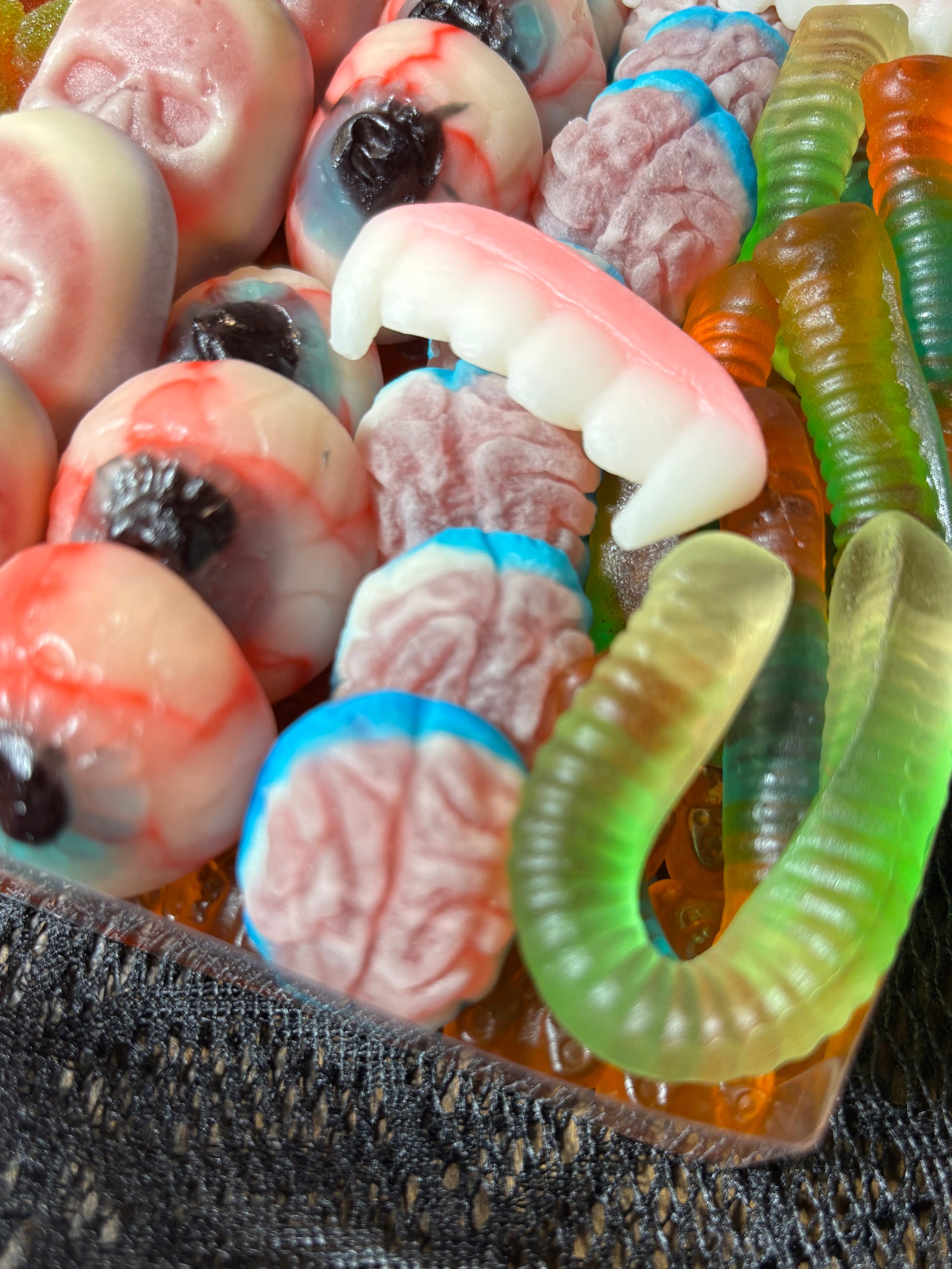 Sink your teeth into spooky season with our frightfully fun Halloween Haunt Candy Tray! Packed with gummy skulls, bloody eyeballs, creepy crawly worms, brains, and vampire fangs, this chilling assortment is the ultimate party showstopper. Perfect for your next Halloween party, every bite is a mix of chewy, fruity, and deliciously eerie fun.